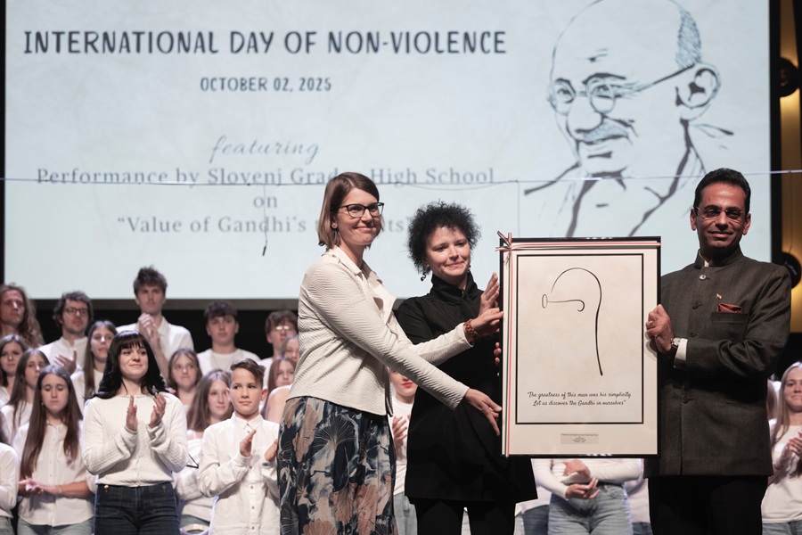 The Embassy marked the 1st International Day of Non-Violence on 2nd October 2025 in Ljubljana with an exhibition on the human cost of terrorism